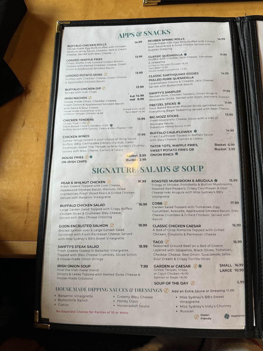From the moment you step in, you're greeted with cozy vibes and a welcoming staff ready to make your meal memorable. Swifty's offers an impressive range of sandwiches that cater to every palate. The Buffalo Chicken Sandwich is a must-try, served on a buttery brioche bun topped with crisp lettuce, juicy tomato, and onion, perfectly paired with a side of zingy bleu cheese dressing for just US$17.59. If you're in the mood for something classic, the Swifty's Reuben, made with warm corned beef or turkey, Swiss cheese, Russian dressing, and tangy sauerkraut, promises a savory experience at only US$18.69.